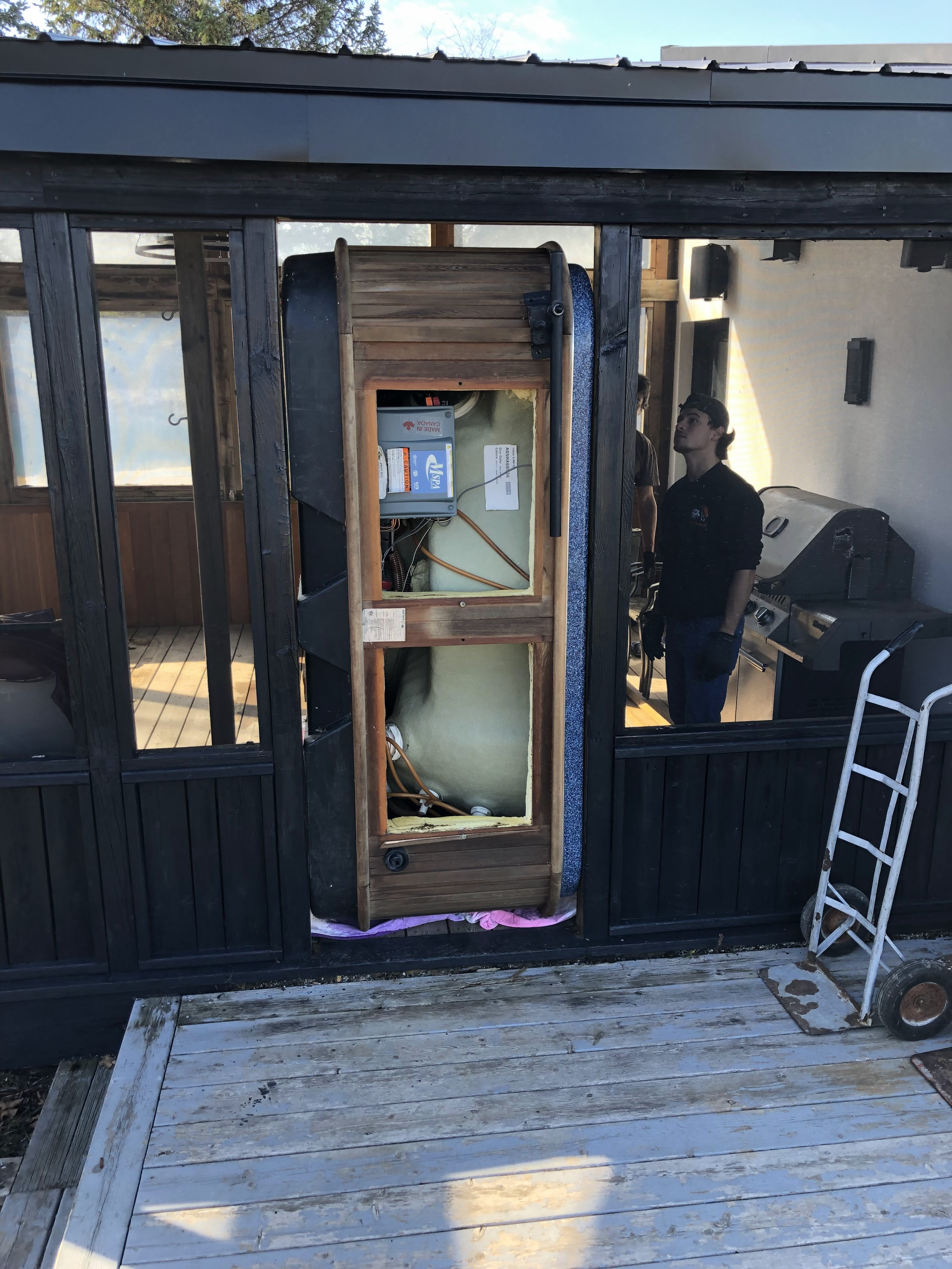 Each demolition of the Hot-Tub is firstly inspected for safety & best practices to remove, then is carefully taken apart with power tools & crew strength.